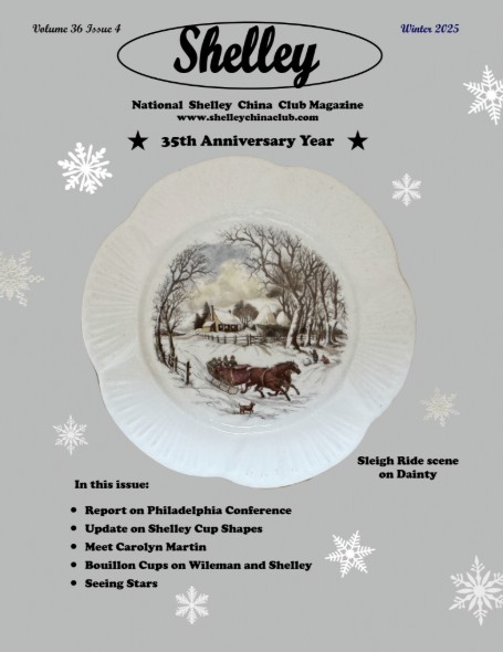 The National Shelley China Club publishes a quarterly magazine for its members. Since 1990 this has been a valuable resource for our members, providing educational articles and access to news and pictures about other members and events in the world of Shelley.